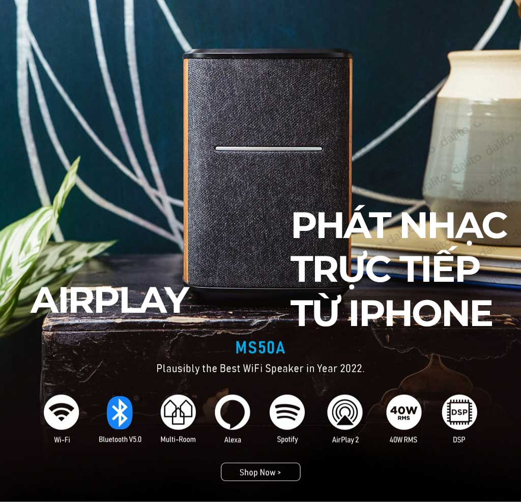 Edifier MS50A là mẫu loa bluetooth đầu tiên của hãng có thết kết nối Wifi để phát nhạc trực tiếp. Ngoài ra, loa active MS50A còn khả năng kết nối với nhau để tạo hệ thông phát nhạc đồng thời, tạo không gian âm thanh stereo sống động. Điều khiển điểm chạm mặt trên loa là ưu điểm, đồng thời có khả năng kết nối Alexa hoặc Airplay để phát nhạc từ iPhone hay iPad và Macbook cực kì dễ dàng.