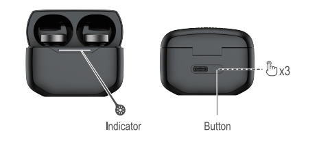 2. Ấn nút kết nối trên hộp sạc 3 lần liên tiếp để xóa các kết nối trước đó. Đèn led sẽ chạy từ 2 bên về giữa, sau đó nháy 2 lần khi reset thành công.