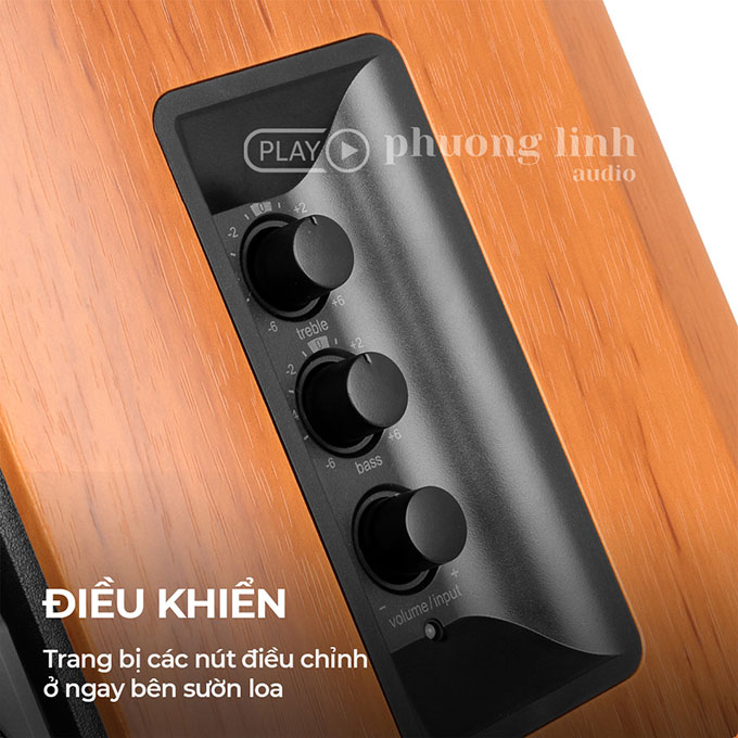 Bảng điều khiển bên hông loa Edifier R1380DB cho phép bạn điều chỉnh âm lượng, bass, treble và các tính năng khác một cách đơn giản. Loa bluetooth 5.1 đảm bảo kết nối nhanh và ổn định trong khoảng cách 10m, có chướng ngại vật. Ngoài ra, có thể dễ dàng chuyển qua lại các mode kết nối với TV như cổng quang (Optical), Coaxial, hoặc cổng Line in cho máy tính hoặc kết nối trực tiếp bằng dây với điện thoại có cổng 3.5.